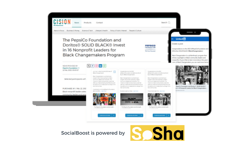 With SocialBoost – exclusively available through PR Newswire and powered by SoSha – you provide social post copy that adheres to your brand's message and makes it easier for your audience to share your story the way you want it to be seen. Feel like crafting original social posts is too time consuming? Let SocialBoost’s AI generate them for you and optimize every post for each social network.